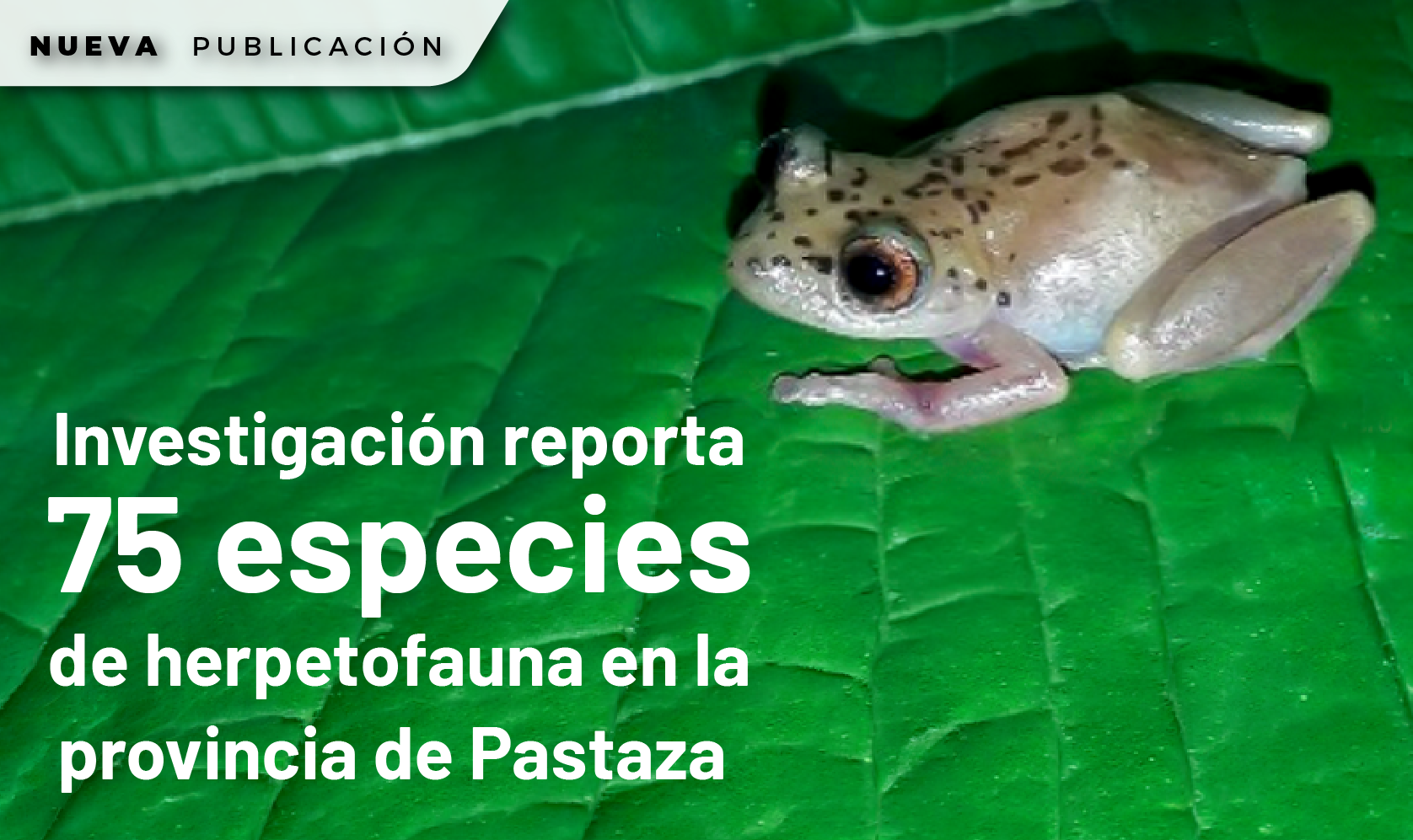 Un estudio desarrollado en la provincia de Pastaza por investigadores de la Universidad Central del Ecuador, Universidad de las Fuerzas Armadas (ESPE), Instituto Nacional de Biodiversidad (INABIO) y Red Ecuatoriana de Universidades para Investigación y Posgrados reporta 75 especies de herpetofauna, entre ranas, salamandras, lagartijas y serpientes, lo que evidencia la riqueza biológica y el valor de conservación de los ecosistemas amazónicos.